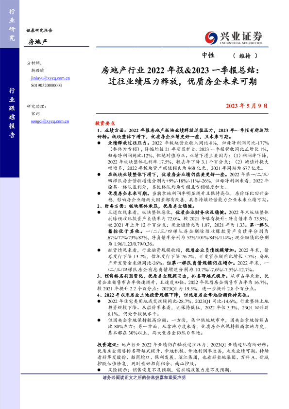【兴业证券】【20230509】房地产行业2022年报&2023一季报总结-13页