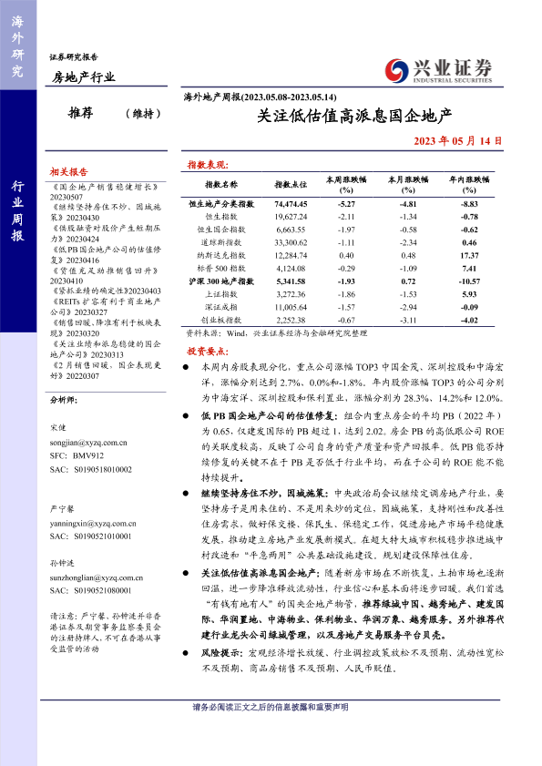 【兴业证券】【20230514】关注低估值高派息国企地产-14页