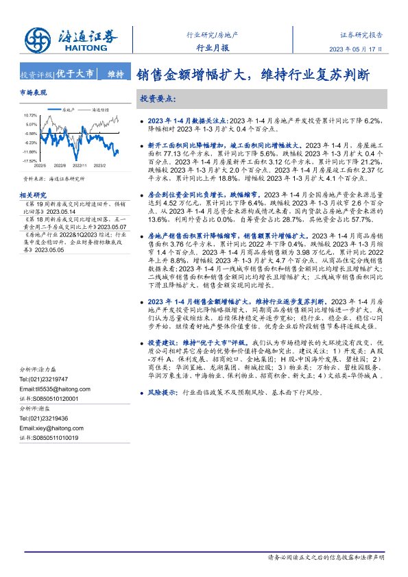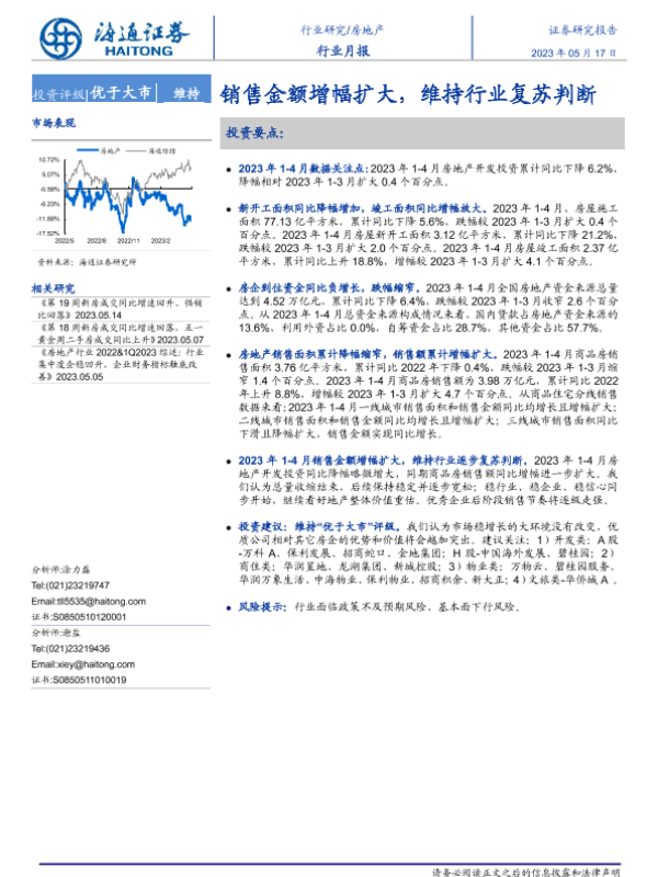 【海通证券】【20230517】房地产行业月报:销售金额增幅扩大,维持行业复苏判断-11页