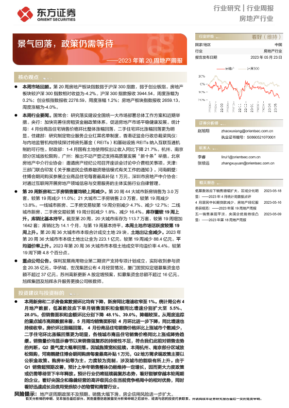 【东方证券】【20230523】2023年第20周地产周报:景气回落,政策仍需等待-15页