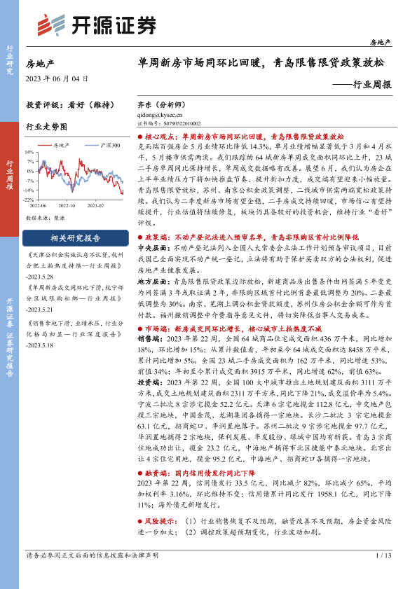 【开源证券】【20230604】单周新房市场同环比回暖,青岛限售限贷政策放松-13页