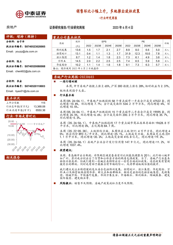 市场走势 房地产销售 放松政策 行业基本面 龙头企业