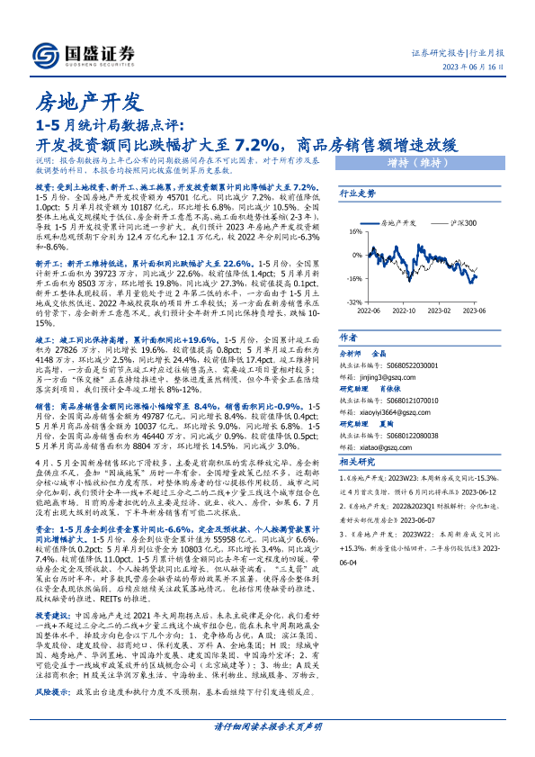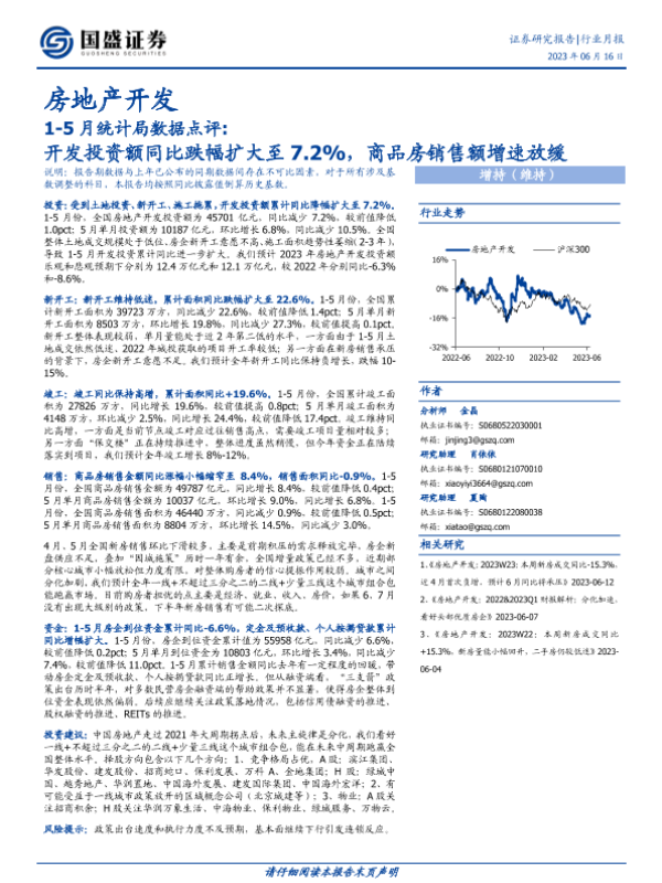 【国盛证券】【20230616】1-5月统计局数据点评 开发投资额同比跌幅扩大至7.2%, 商品房销售额增速放缓-13页