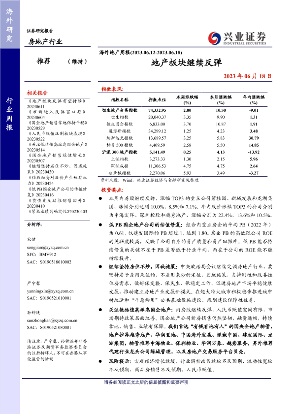 【兴业证券】【20230618】海外地产行业周报:地产板块继续反弹-13页