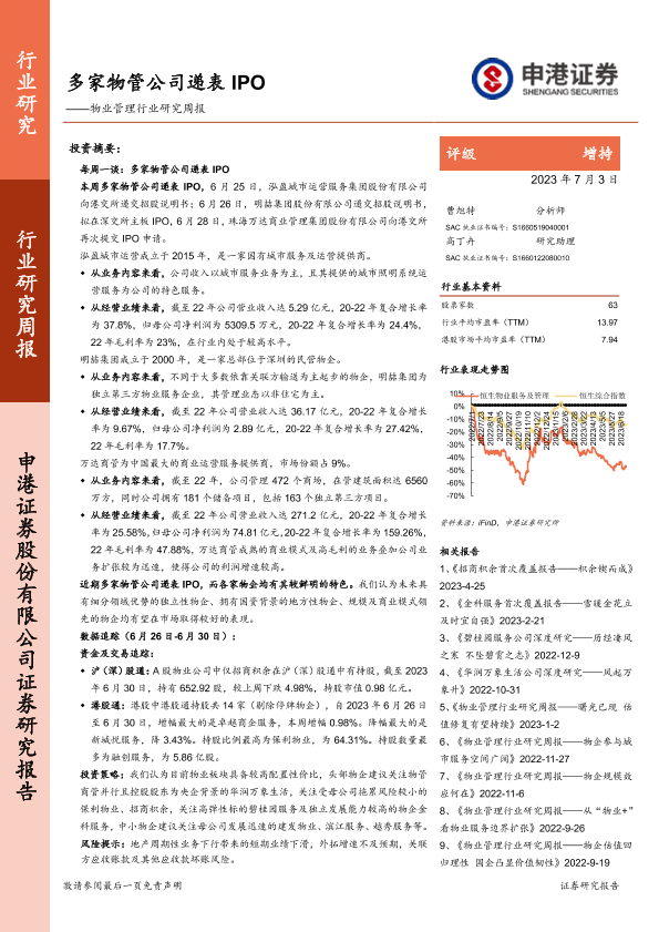【申港证券】【20230703】物业管理行业研究周报:多家物管公司递表IPO-12页