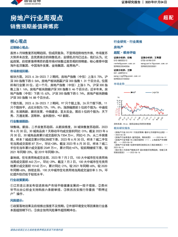 【国信证券】【20230704】房地产行业周观点:销售预期差值得博弈-12页