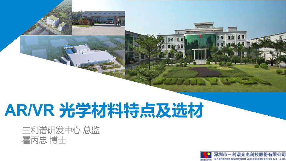 ARVR 三利谱 光学材料 技术研发 选材