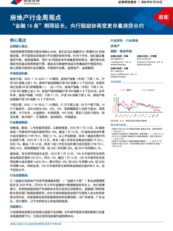 【国信证券】【20230718】房地产行业周观点:“金融16条”期限延长,央行鼓励协商变更存量房贷合约-12页