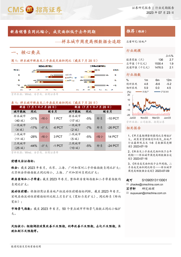 【海通证券】【20230723】样本城市周度高频数据全追踪-新房销售负同比缩小,成交面积低于去年同期-11页