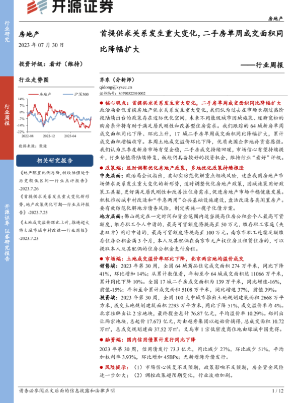 【开源证券】【20230730】首提供求关系发生重大变化,二手房单周成交面积同比降幅扩大-12页
