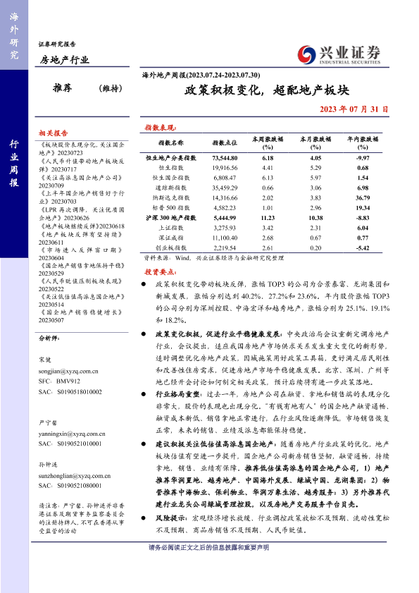 【兴业证券】【20230731】政策积极变化,超配地产板块-12页
