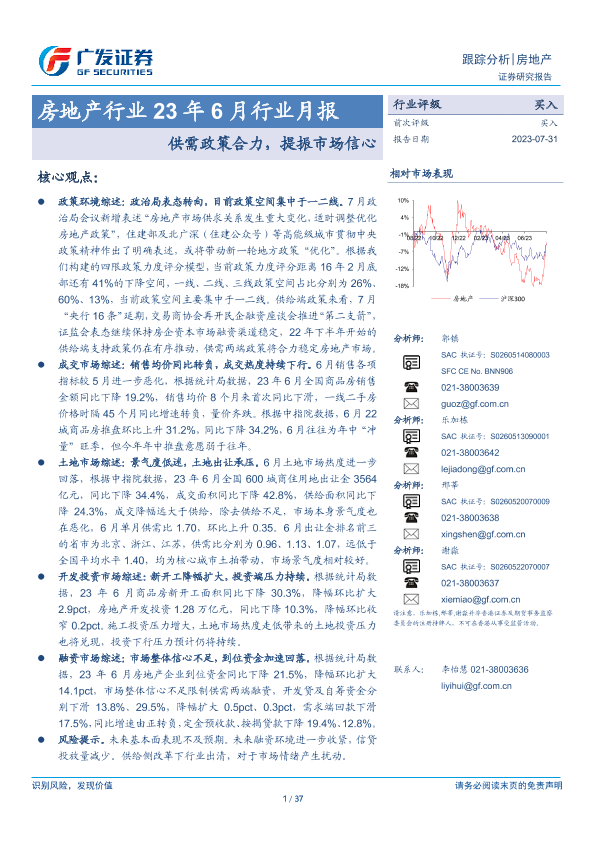 【广发证券】【20230731】23年6月房地产行业月报:供需政策合力,提振市场信心-37页