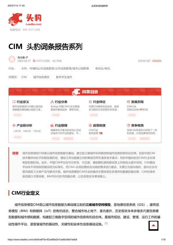 【头豹研究院】【2023】CIM 头豹词条报告系列-16页