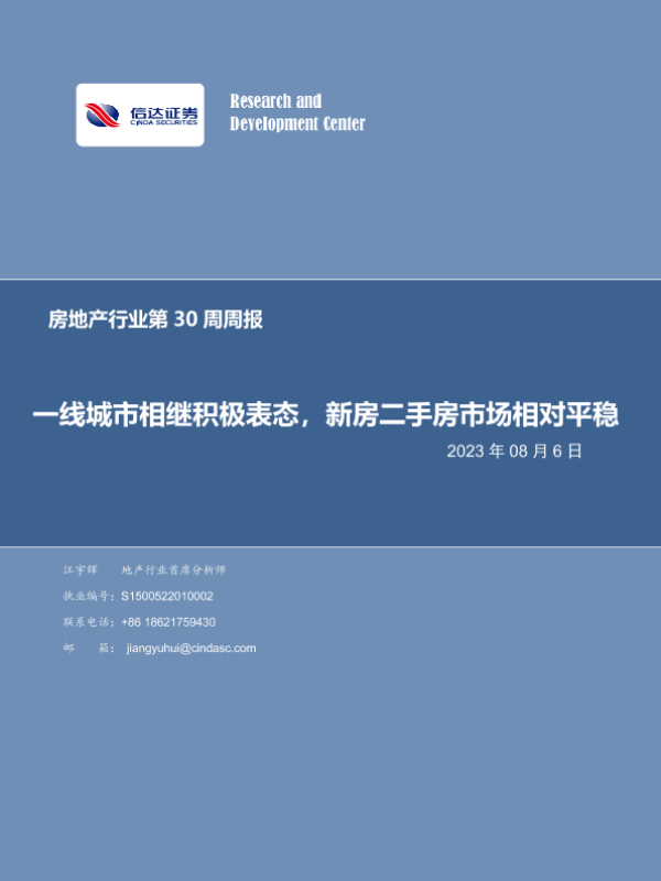 【信达证券】【20230806】一线城市相继积极表态,新房二手房市场相对平稳-18页