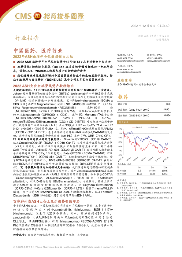【招商证券国际】【20221209】中国医药、医疗行业:2022年ASH血液学会议数据读出总结-27页