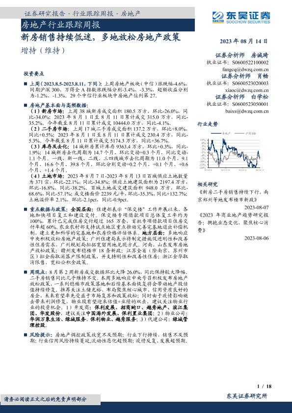 【东吴证券】【20230814】房地产行业跟踪周报:新房销售持续低迷,多地放松房地产政策-18页