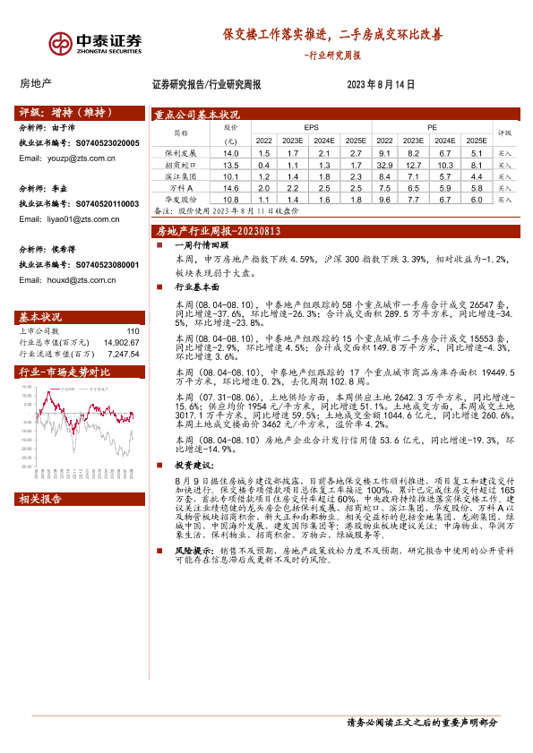 【中泰证券】【20230814】保交楼工作落实推进,二手房成交环比改善-16页