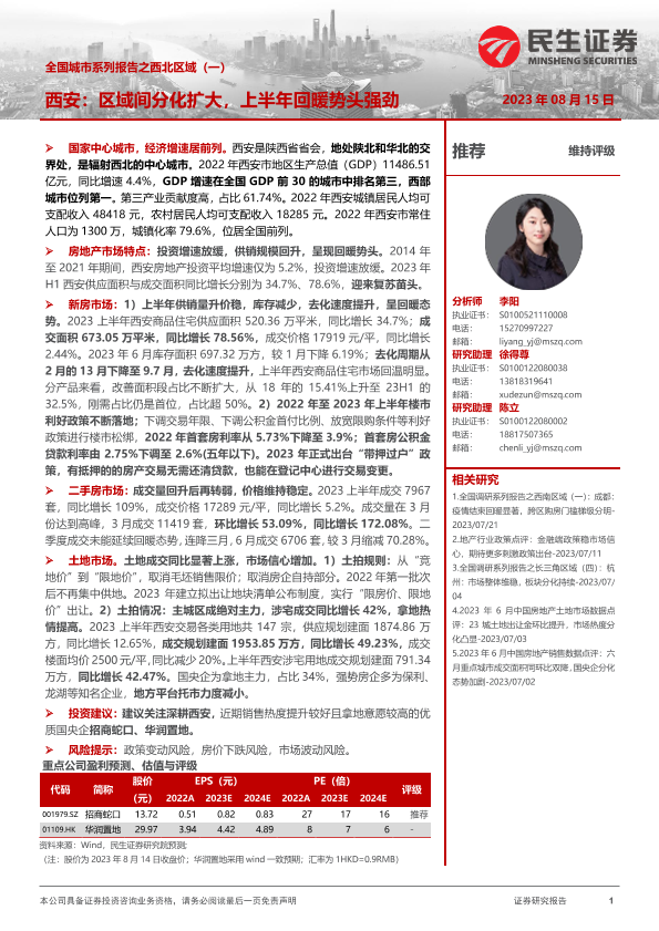 【民生证券】【20230815】全国城市系列报告之西北区域(一):西安:区域间分化扩大,上半年回暖势头强劲-19页