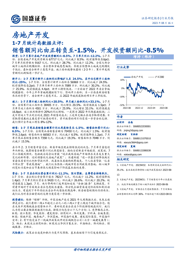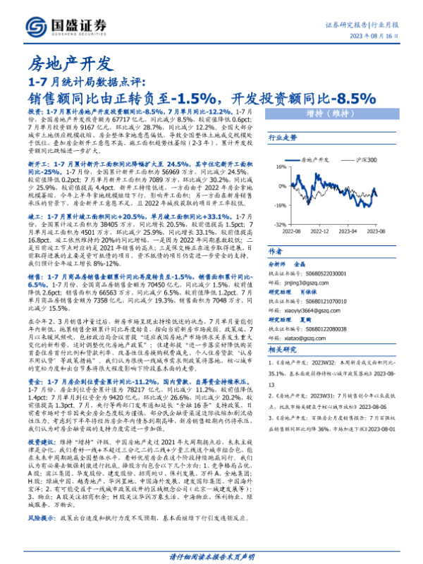 【国盛证券】【20230816】1-7月统计局数据点评:销售额同比由正转负至-1.5%,开发投资额同比-8.5%-13页