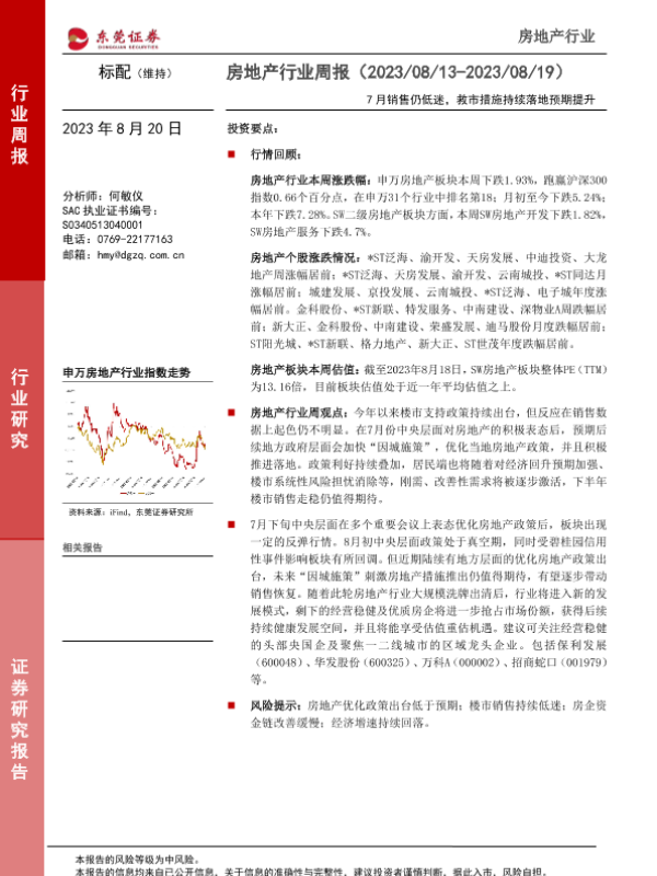 【东莞证券】【20230820】房地产行业周报:7月销售仍低迷,救市措施持续落地预期提升-10页