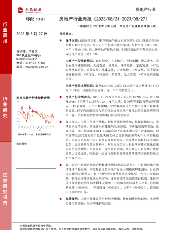 【东莞证券】【20230827】房地产行业周报:5年期以上LPR未如预期下降,本周地产板块累计录得下跌-10页