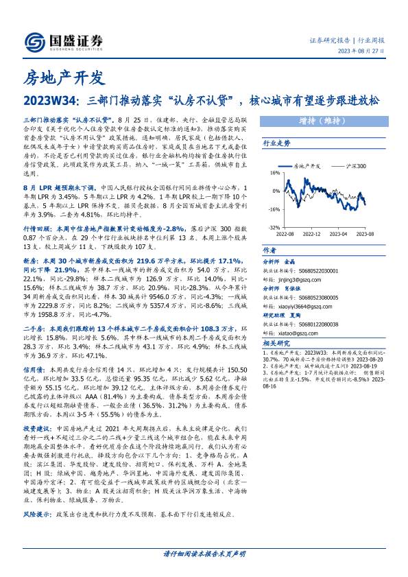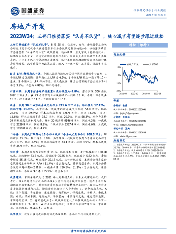 【国盛证券】【20230827】房地产开发2023W34:三部门推动落实“认房不认贷”,核心城市有望逐步跟进放松-13页