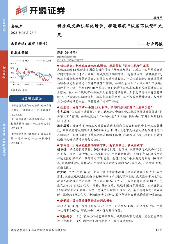 【开源证券】【20230827】新房成交面积环比增长,推进落实“认房不认贷”政策-13页