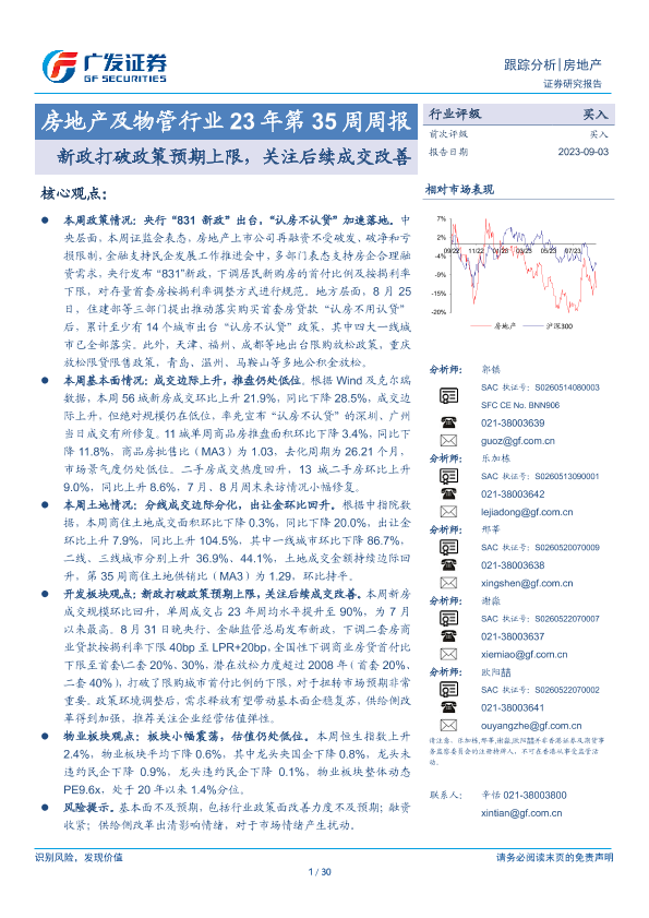 【广发证券】【20230903】房地产及物管行业23年第35周周报:新政打破政策预期上限,关注后续成交改善-30页