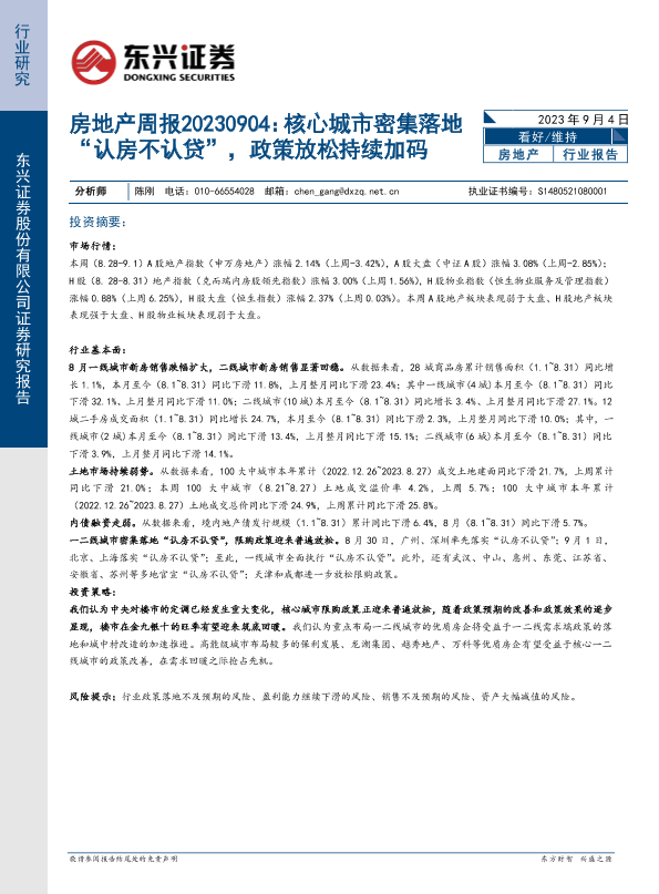 【东兴证券】【20230904】房地产周报:核心城市密集落地“认房不认贷”,政策放松持续加码-19页