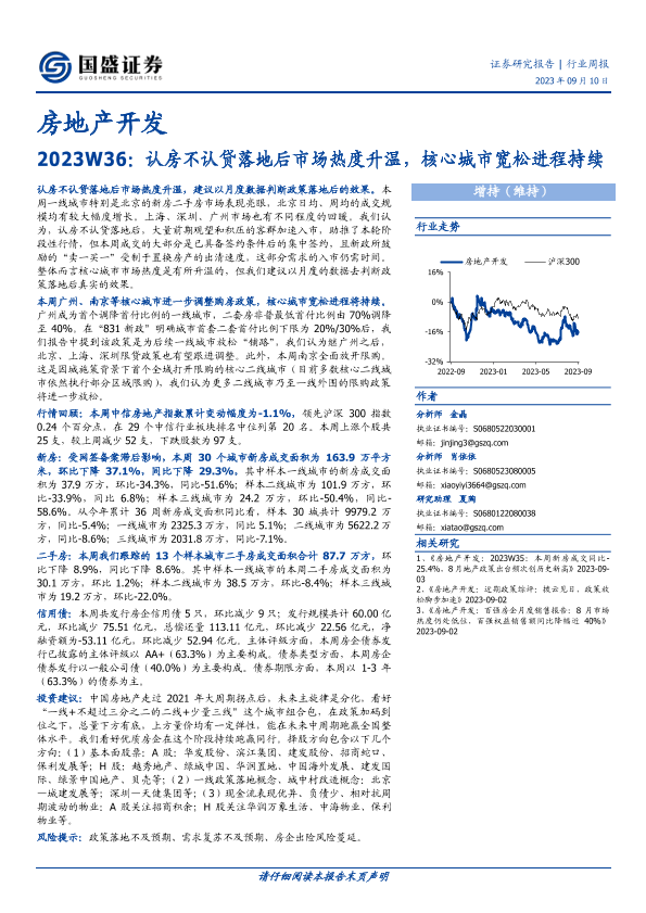 【国盛证券】【20230910】房地产开发2023W36:认房不认贷落地后市场热度升温,核心城市宽松进程持续-14页