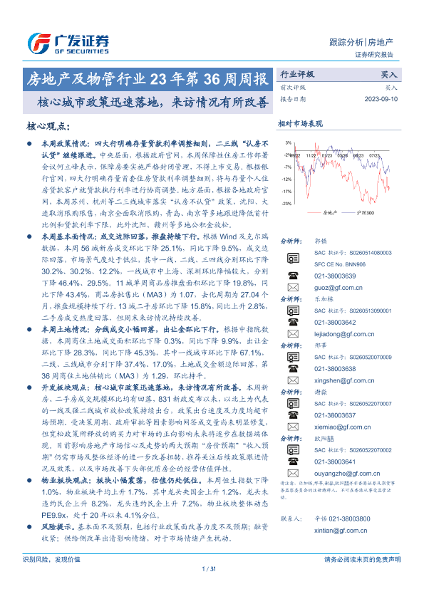 【广发证券】【20230910】房地产及物管行业23年第36周周报:核心城市政策迅速落地,来访情况有所改善-31页