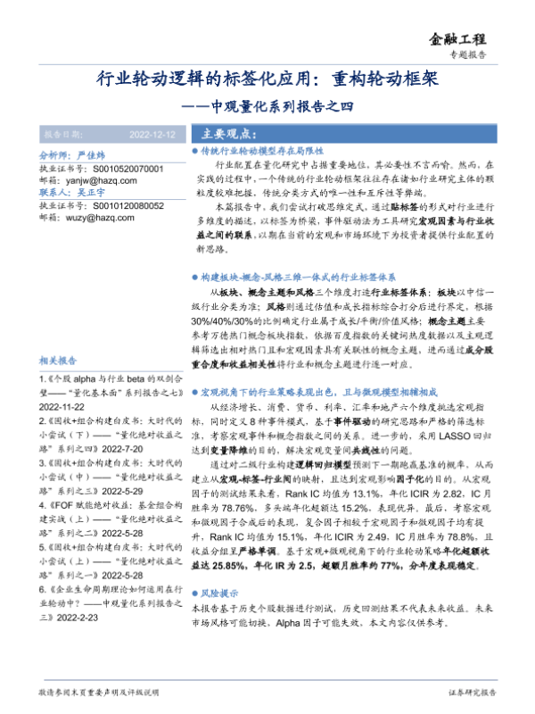 宏观因素 标签化应用 行业轮动 量化分析 金融工程
