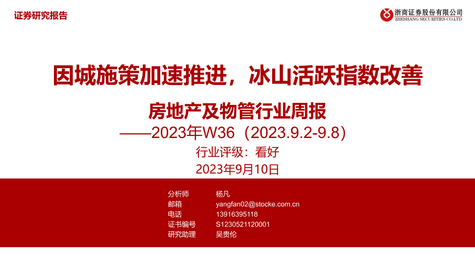 【浙商证券】【20230910】房地产及物管行业周报:因城施策加速推进,冰山活跃指数改善-14页