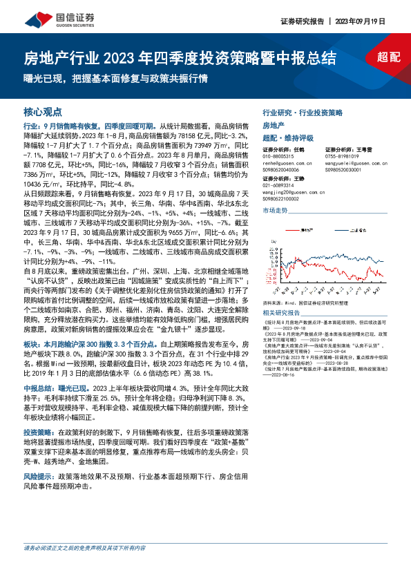 【国信证券】【20230919】房地产行业2023年四季度投资策略暨中报总结:曙光已现,把握基本面修复与政策共振行情-13页