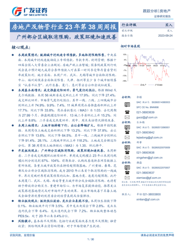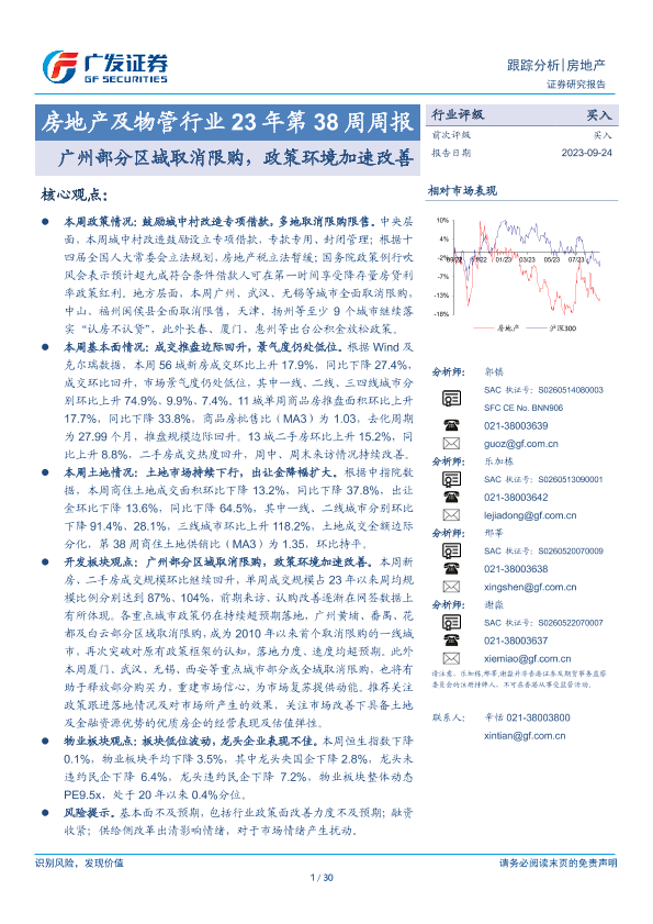 【广发证券】【20230924】房地产及物管行业23年第38周周报:广州部分区域取消限购,政策环境加速改善-30页
