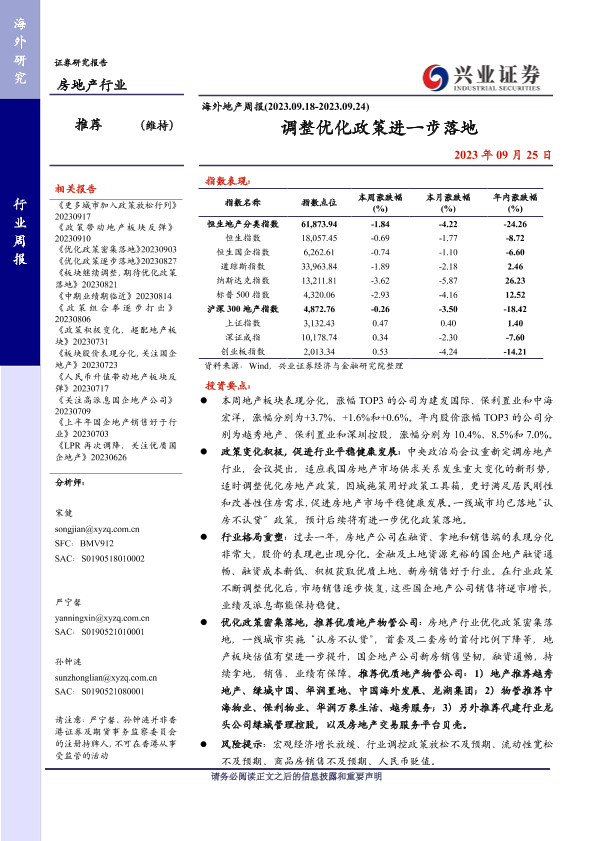 【兴业证券】【20230925】海外地产周报:调整优化政策进一步落地-12页
