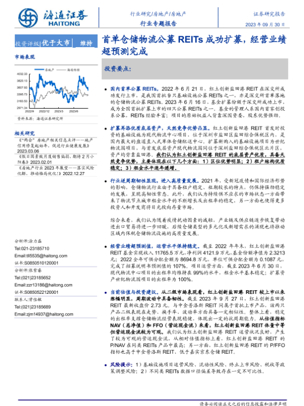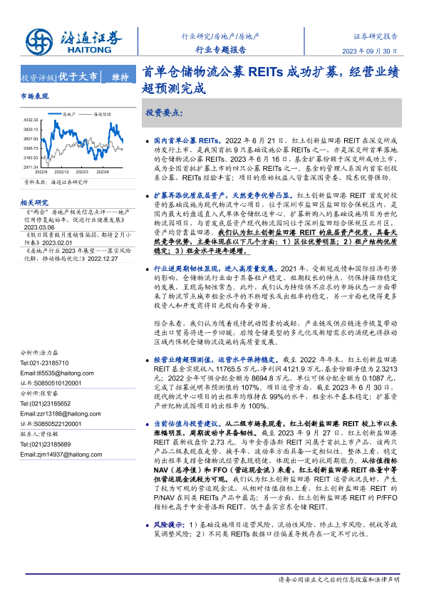 【海通证券】【20230930】首单仓储物流公募REITs成功扩募,经营业绩超预测完成-16页