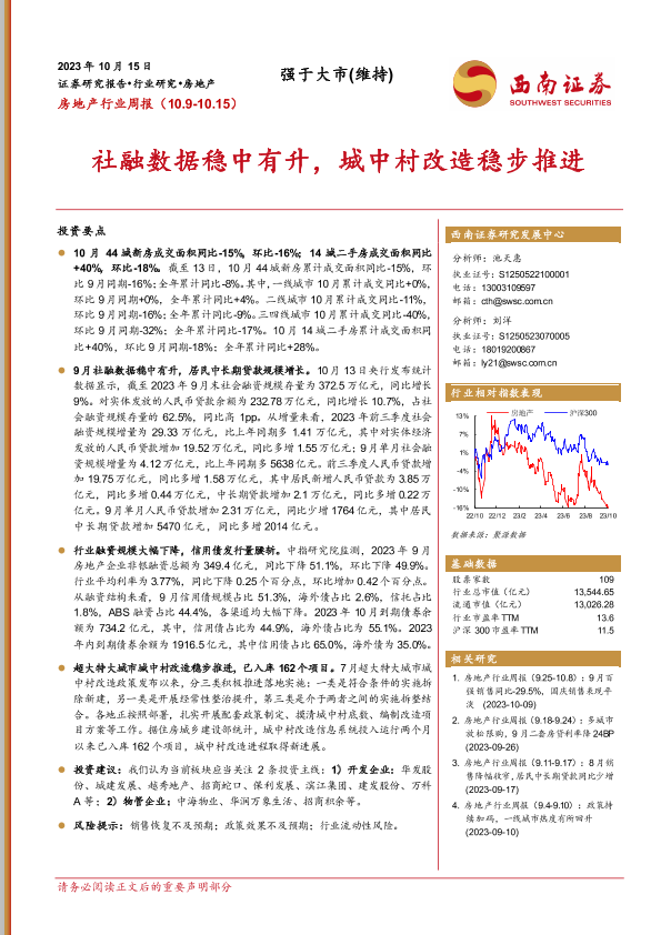 【西南证券】【20231015】房地产行业周报:社融数据稳中有升,城中村改造稳步推进-14页