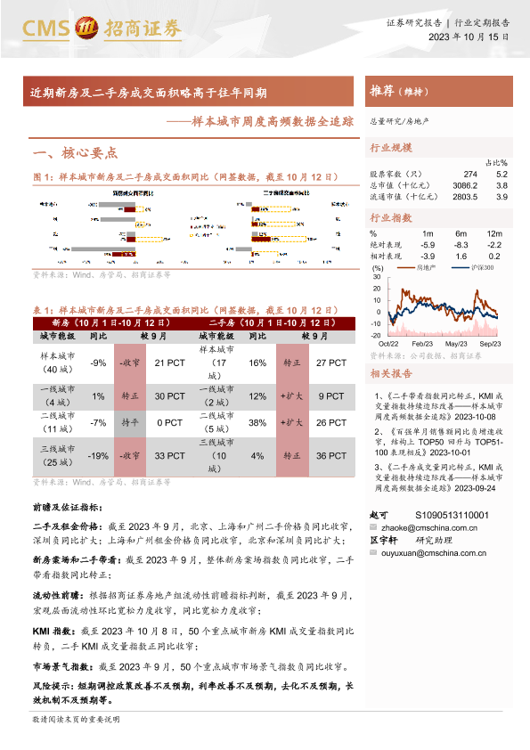 【海通证券】【20231015】样本城市周度高频数据全追踪:近期新房及二手房成交面积略高于往年同期-12页