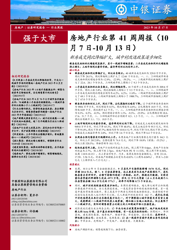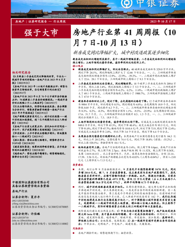 【中银证券】【20231017】房地产行业第41周周报:新房成交同比降幅扩大,城中村改造政策逐步细化-25页