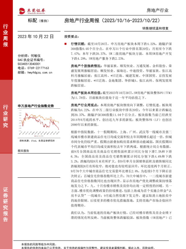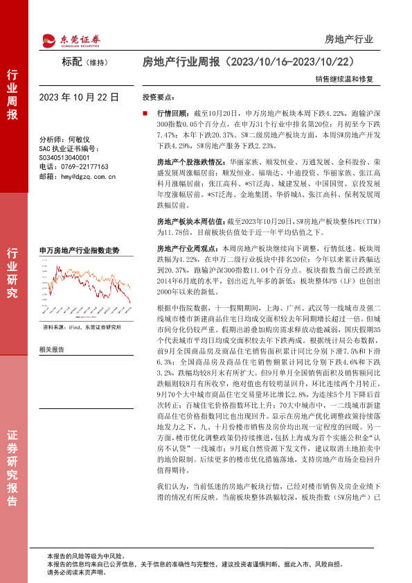 【东莞证券】【20231022】房地产行业周报:销售继续温和修复-13页