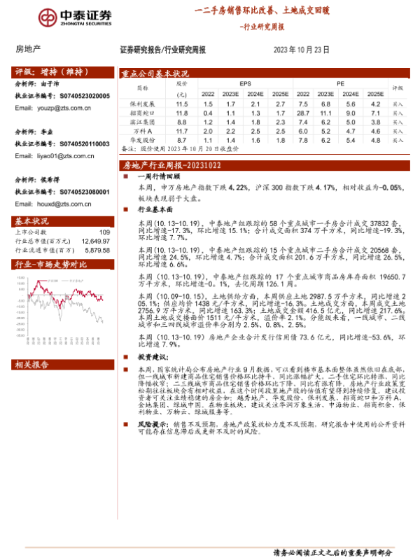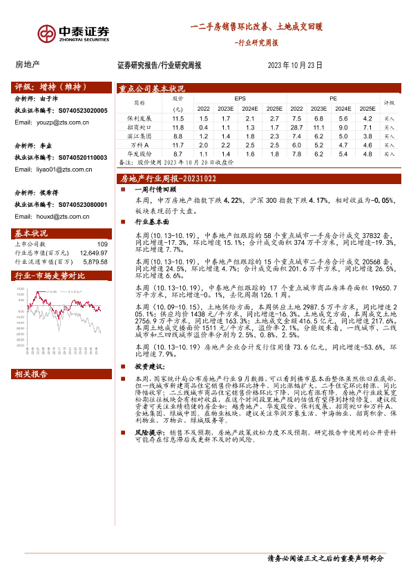【中泰证券】【20231023】一二手房销售环比改善、土地成交回暖-16页