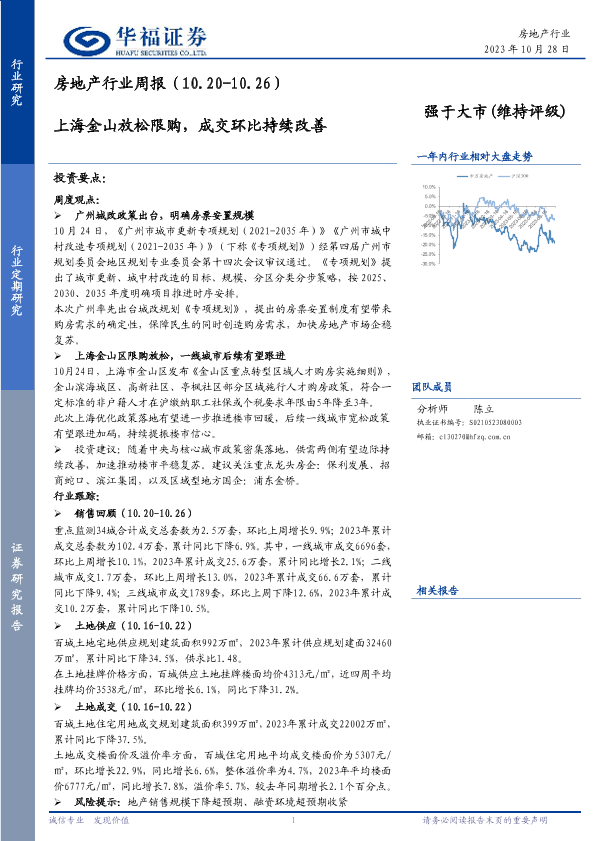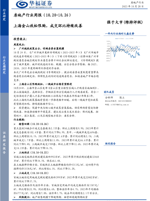 【华福证券】【20231028】房地产行业周报:上海金山放松限购,成交环比持续改善-11页