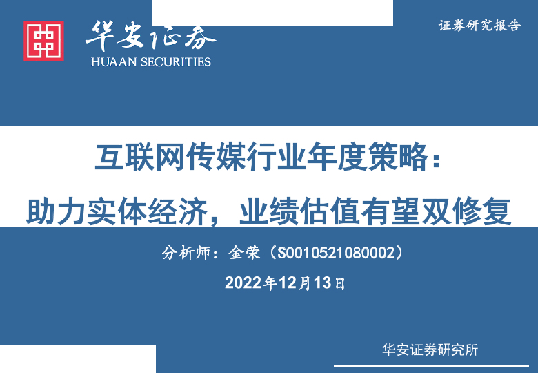 【华安证券】【20221213】互联网传媒行业年度策略:助力实体经济,业绩估值有望双修复-132页