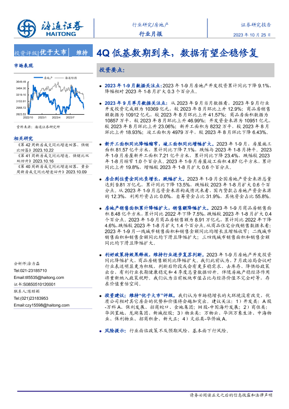 【海通证券】【20231025】房地产行业月报:4Q低基数期到来,数据有望企稳修复-12页