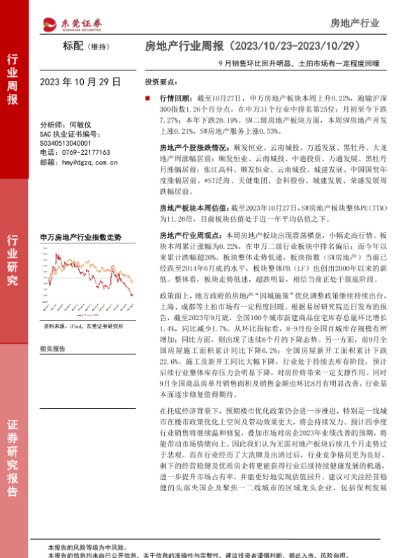 【东莞证券】【20231029】房地产行业周报:9月销售环比回升明显,土拍市场有一定程度回暖-11页