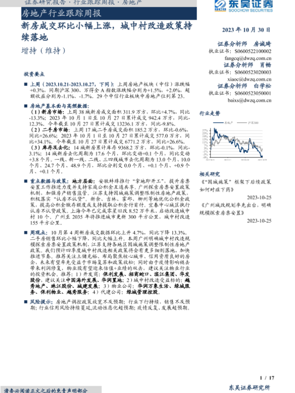 【东吴证券】【20231030】房地产行业跟踪周报:新房成交环比小幅上涨,城中村改造政策持续落地-17页
