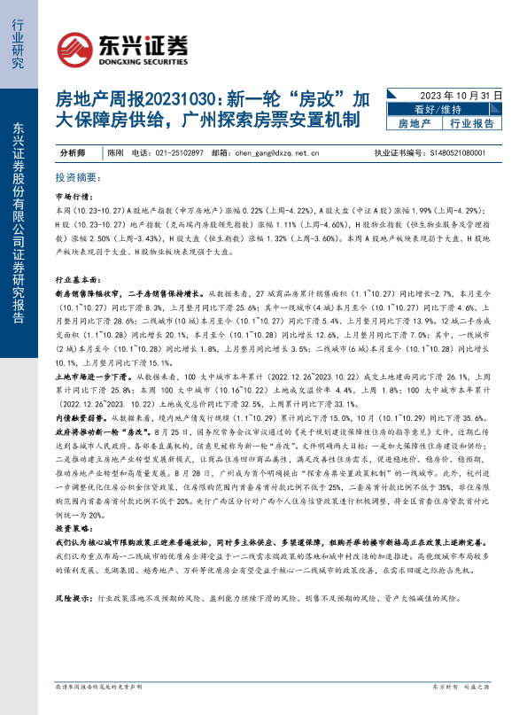 【东兴证券】【20231031】新一轮“房改”加大保障房供给,广州探索房票安置机制-18页