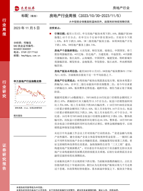 【东莞证券】【20231105】房地产行业周报:大中型房企销售面积温和回升,政策利好持续预期仍高-11页
