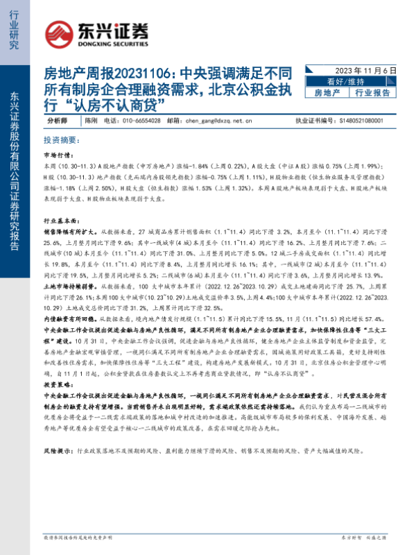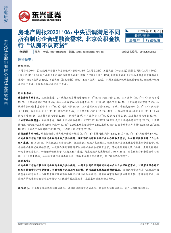 【东兴证券】【20231106】房地产周报:中央强调满足不同所有制房企合理融资需求,北京公积金执行“认房不认商贷”-18页